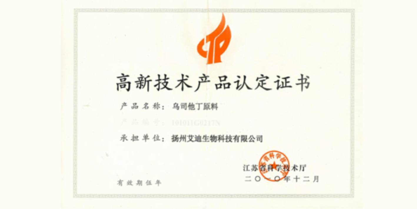 • 乌司他丁原料获得2010年江苏省高新技术产品认定